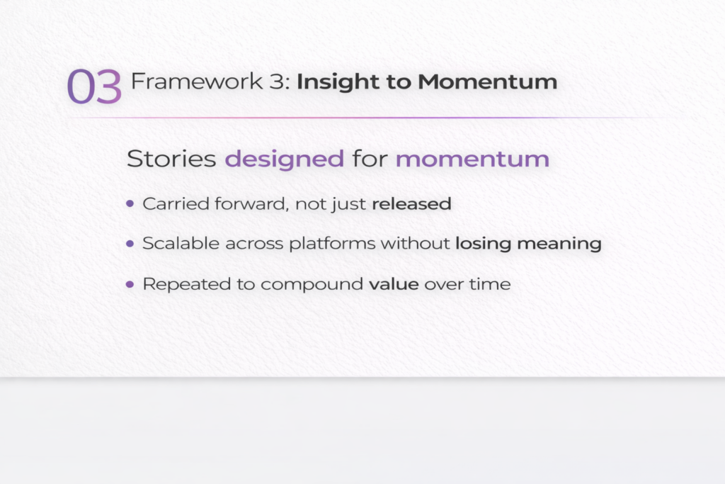 Insight to Momentum is the discipline of designing narratives that don’t just land — they carry forward.